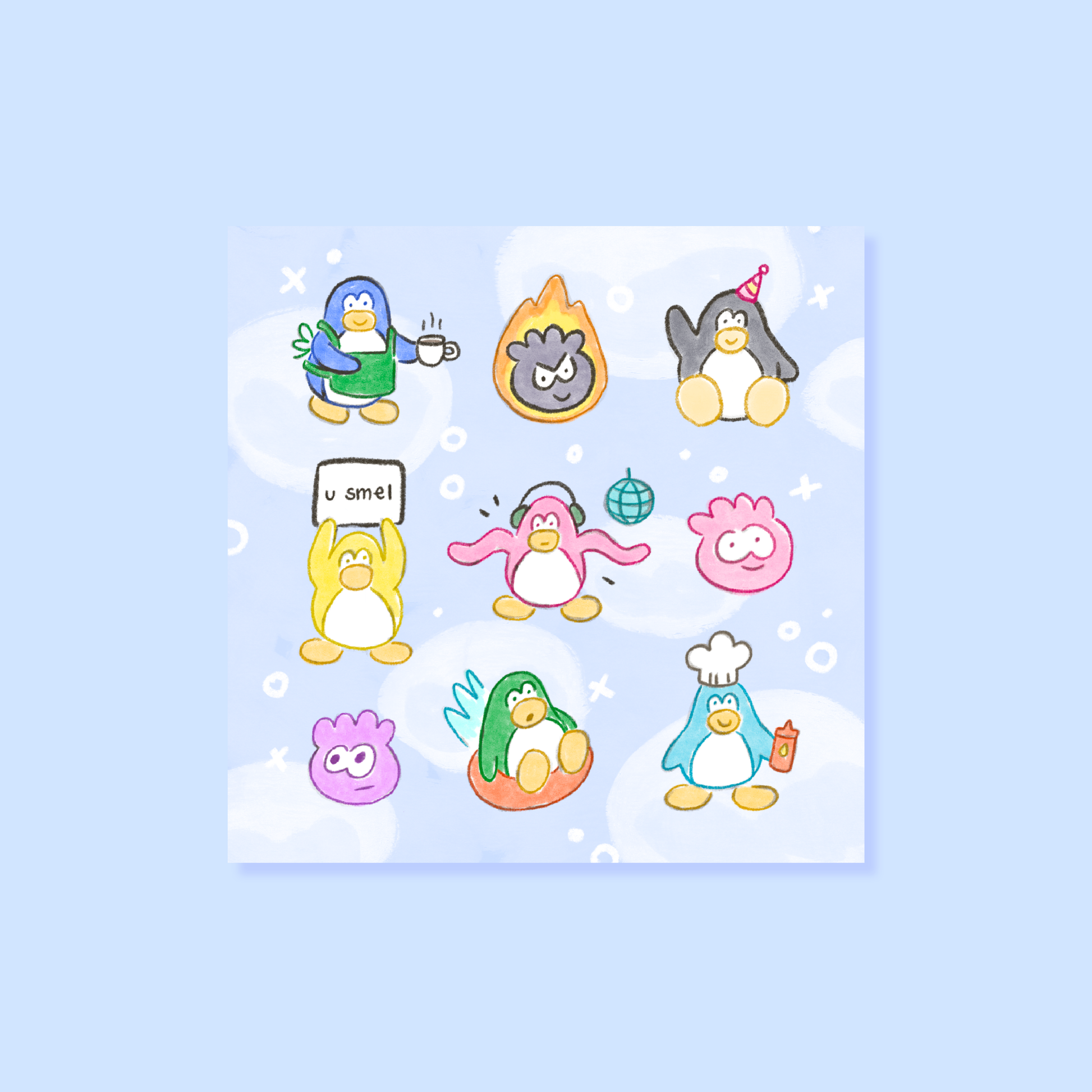 Club Pengy Mini Square Postcard Art Print
