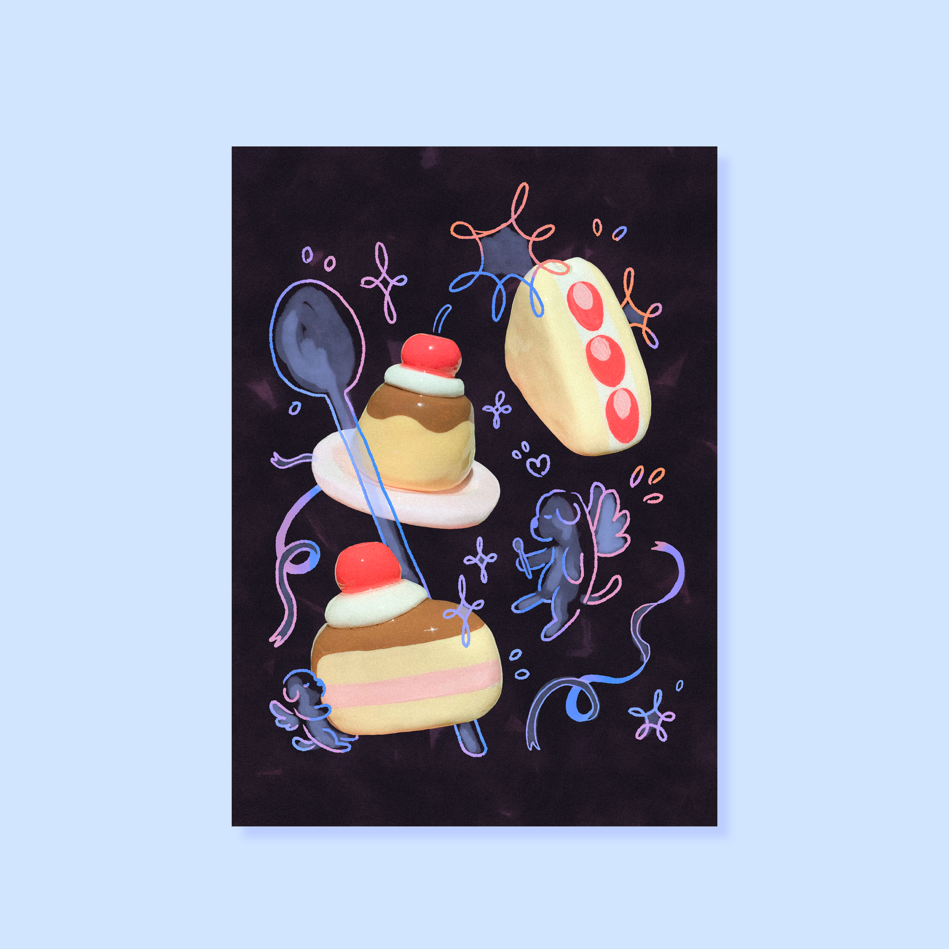 Dessert Doggies (Dark) 5x7 Postcard Print