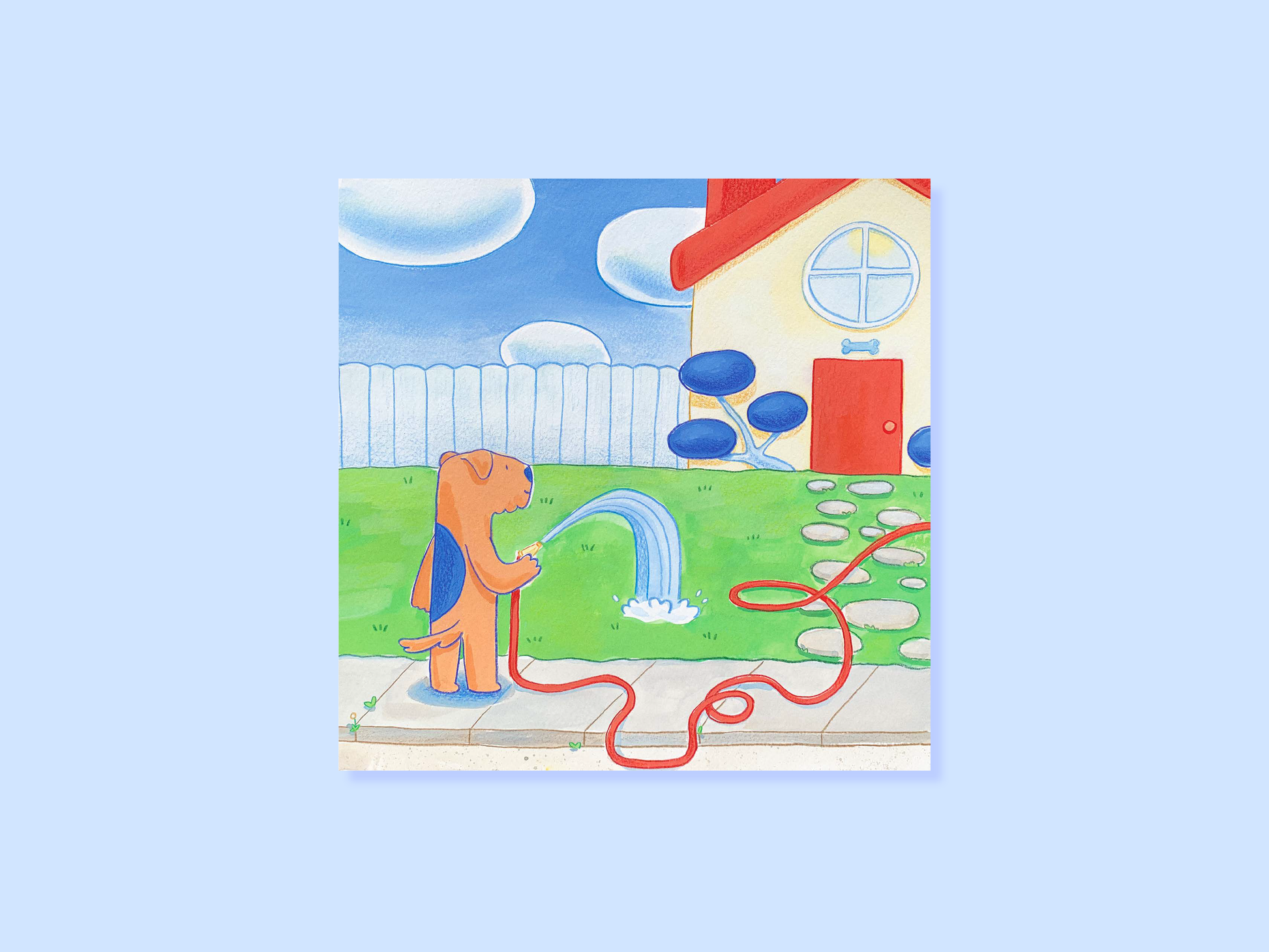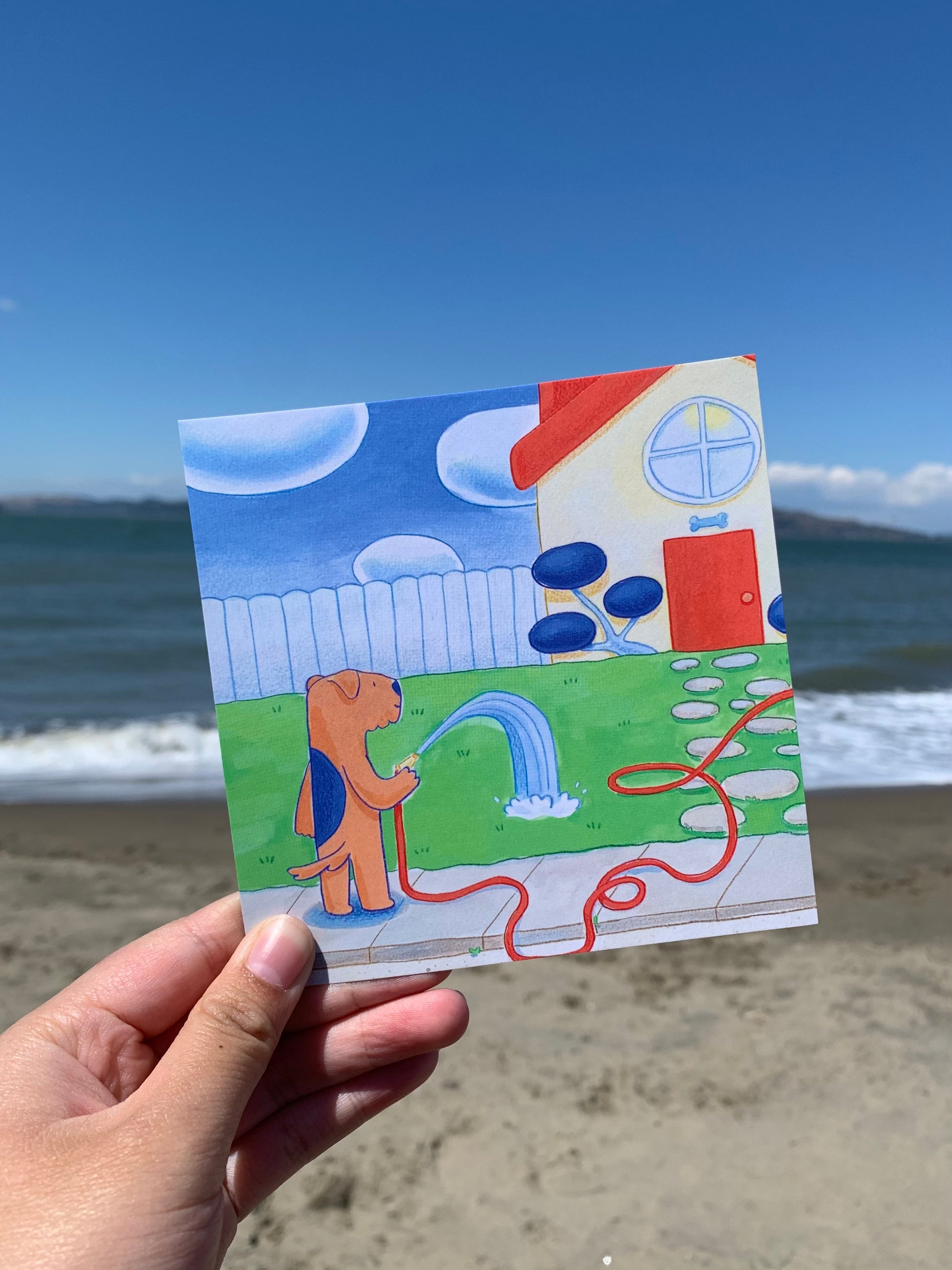 Watering Lawn Mini Square Postcard Art Print
