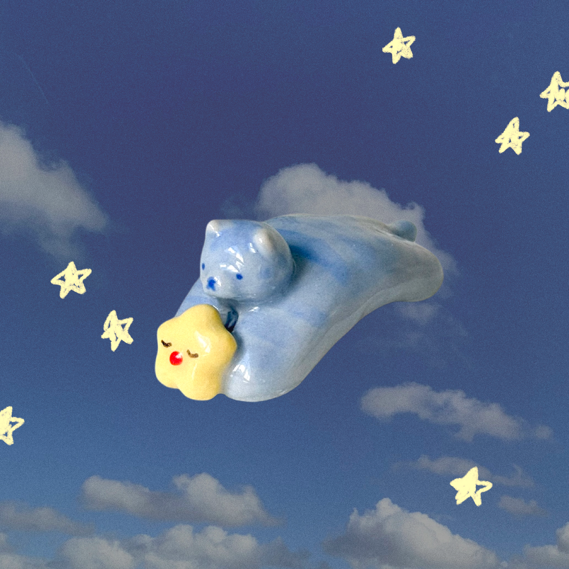 Woody Makes Things x Makenna Kwik Ceramic Figurine - Blue Kitty and Star